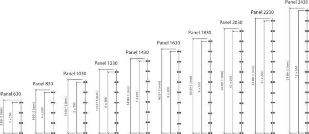 Panelstängsel typ 6/5/6 består av punktsvetsade trådar i dimensionerna 6mm på de horisontala och 5mm på de vertikala. Storleken på maskorna är 200x50mm.