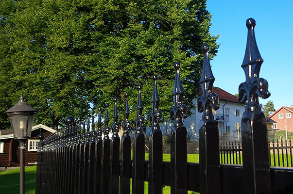 Palissadstängsel och grindar går även att komplettera med smidestopp.